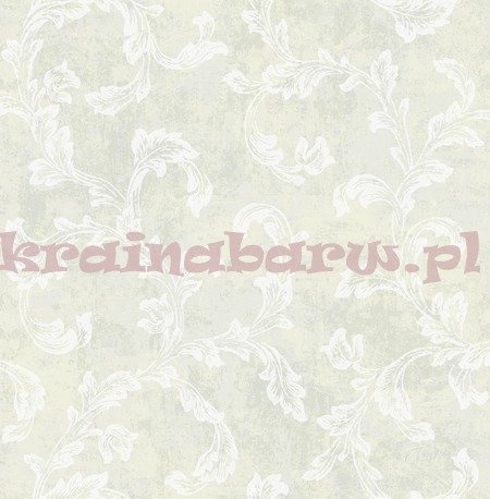 Wzór Scroll. Tapeta z motywem roślinnym w stylu retro. Jest ona w kolorze beżowym.