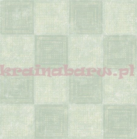 Wzór Squares. Tapeta w połyskujące kwadraty z kropkami w środku. Jest ona w odcieniach koloru szarego nieco podchodzącego pod pastelowy błękit.