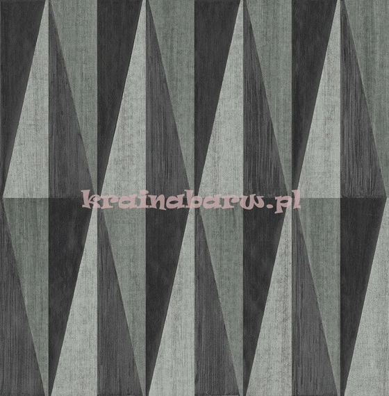 Geometryczna tapeta, tworząca efekt 3D. Nowoczesny wzór będzie idealny do współczesnych wnętrz. Układa się on w delikatnie połyskujące, trójkąty. Jest ona w kolorystyce czarno-srebrnej.