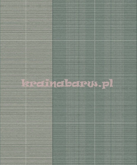 Tapeta w pasy poprzecinana kratką i mniejszymi paseczkami. Doskonała do ekskluzywnie wykończonych pomieszczeń. Kolor niebieski i srebrny.