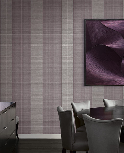Tapeta w pasy poprzecinana kratką i mniejszymi paseczkami. Doskonała do ekskluzywnie wykończonych pomieszczeń. Kolor fioletowy i srebrny.