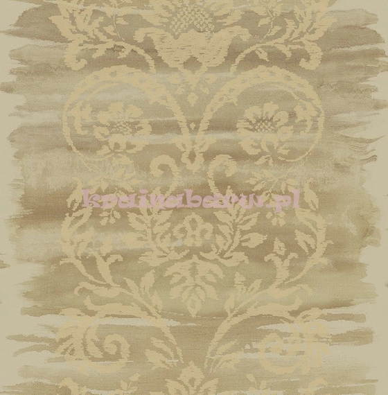 Tapeta z ornamentem naniesionym na rozmywające się tło. Jest ona w odcieniach koloru złotego.