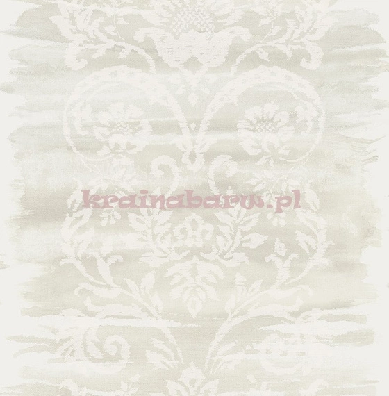 Tapeta z ornamentem naniesionym na rozmywające się tło. Jest ona w odcieniach szarego popielatego.