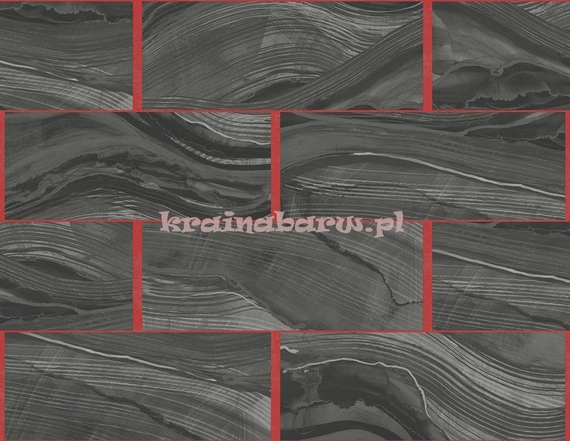 Tapeta z motywem desek w nowoczesnym wydaniu. Idealnie pasuje do współczesnych, luksusowych pomieszczeń. Deski są w kolorze czarno-srebrnym, z delikatnym połyskiem. Między nimi dostrzeżemy barwę czerwoną.
