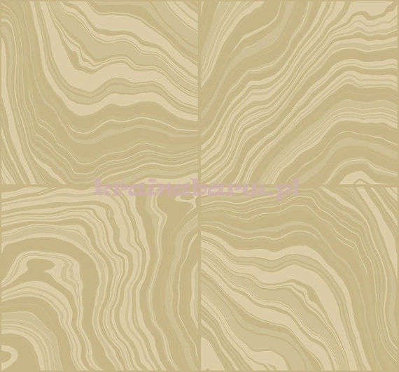 Tapeta z wzorem przypominającym onyks. Jest on naniesiony na duże kwadraty. Wzór posiada delikatne wypukłości, wyczuwalne w dotyku. Jest ona w odcieniach koloru beżowego i złotego.