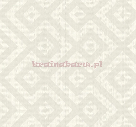 Tapeta z geometrycznym wzorem. Układa się on w połączone ze sobą romby. Dominuje tutaj kredowa biel, oraz delikatnie połyskująca szarość.