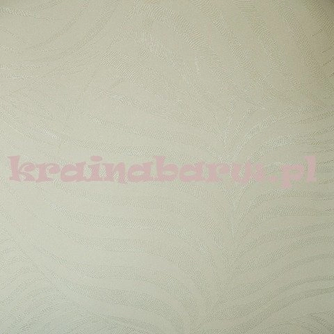 Nowoczesna tapeta z naniesionym motywem paprotki. Tło jest w połyskującym białym kolorze. Liście paproci są srebrne.