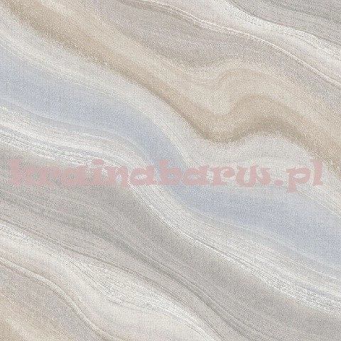 Tapeta o gładkiej fakturze. Wzór naniesiony na nią przypomina marmur. Jest ona w odcieniach koloru szarego. Delikatnie mieni się na złoto.