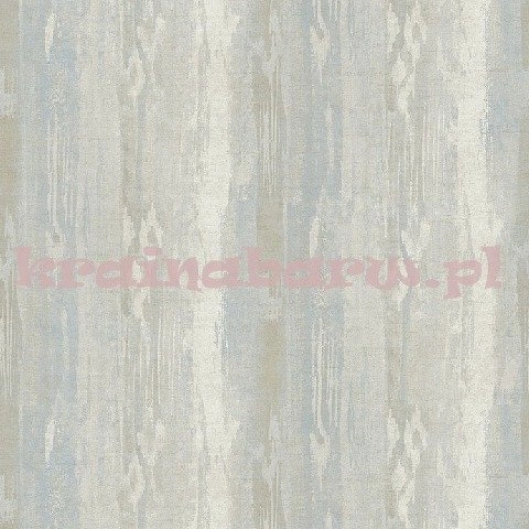 Nowoczesna, jednokolorowa tapeta. Naniesiony wzór układa się w pionowe, nieregularne pasy. Kolor jasnej szarości i błękitu.