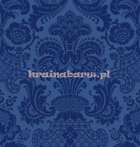 - Ekskluzywna tapeta z flokowanym ornamentem. Kolor niebieski. Wzór Petrouchka