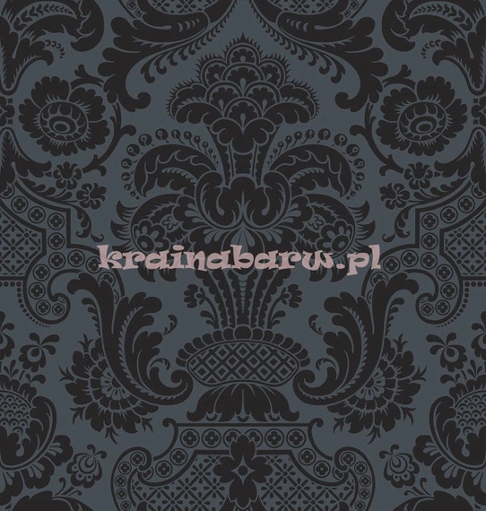 Ekskluzywna tapeta z flokowanym ornamentem. Kolor czarny.