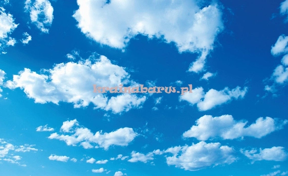 Fototapeta z błękitnym niebem, białymi chmurami, obłokami.