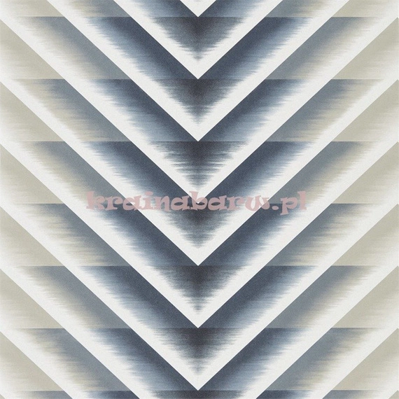 Geometryczny wzór układający się w jodełkę. Dominuje tutaj kolor niebieski oraz biały. Tapetę przecina beżowy, rozmywający się pas.