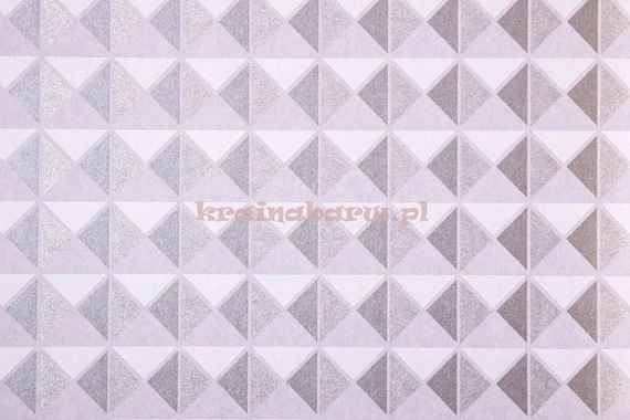 Wzór geometryczny składający się z symetrycznie ułożonych trójkątów. Mieni się na nim kolor srebrny, szary i biały.
