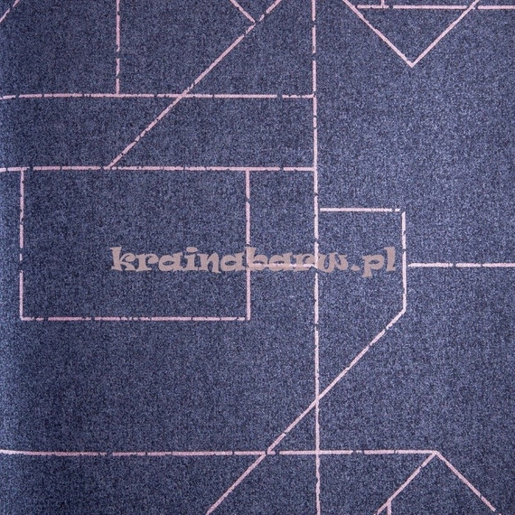 Na tapecie widać linie, które układają się w nieregularne, geometryczne kształty. Kolor granatowy z połyskiem.
