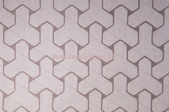 Tapeta o wzorze geometrycznym, przypominającym powiększony splot tkaniny. Szarawa kolorystyka z delikatny połskiem.