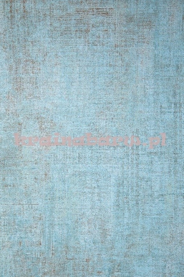 Jednokolorowa tapeta o wyczuwalnej, szorstkiej i wytrzymałej fakturze. Kolor błękitny z domieszką złotego.