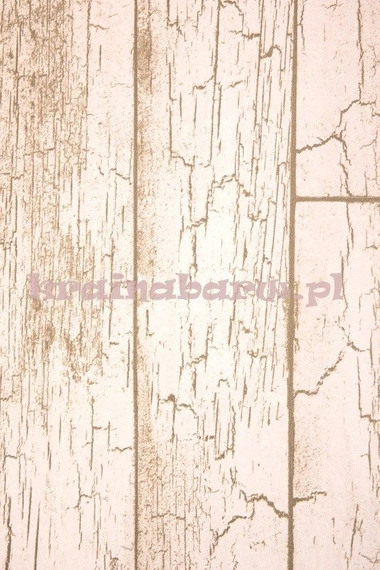 Tapeta ze starymi deskami. Kolor biały z domieszką złotego.