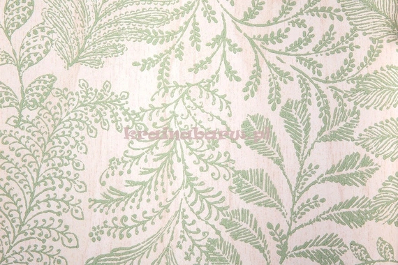 Na tapecie znajdują się liście paproci. Kolorystyka biało zielona.