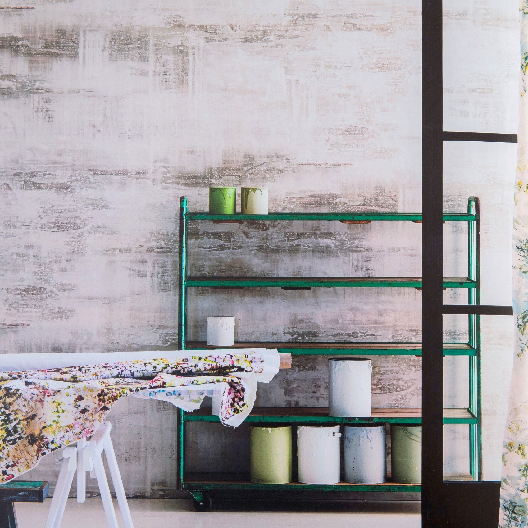 Tapeta Dreaming składa się z rozmytych pasów i plam. Jasno szarawa kolorystyka.