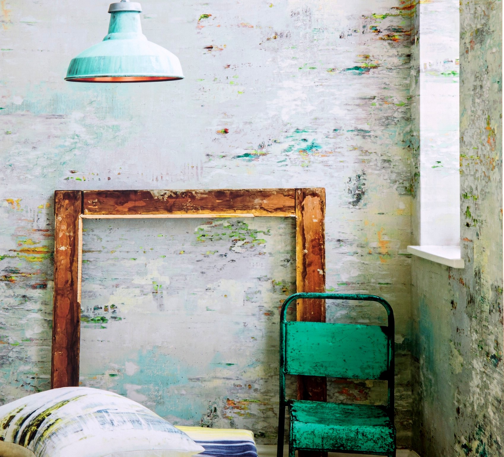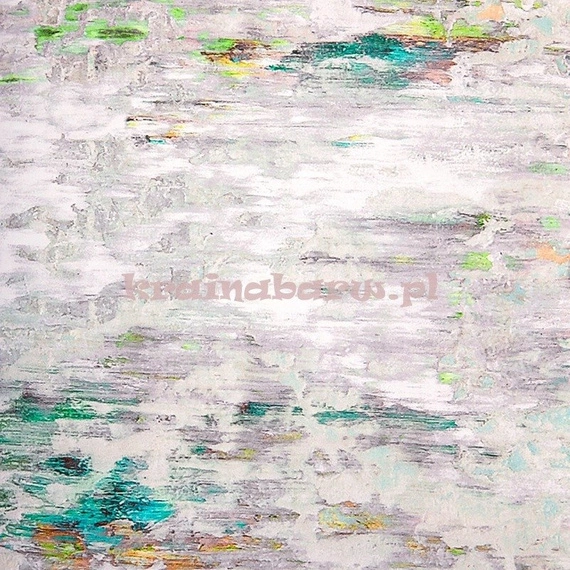 Na tapecie Big Smile znajduje się cieszący oko i uspokajający malowany wzór. Jest ona w odcieniach wielu kolorów- szarości, turkusu, zielonego, żółtego.