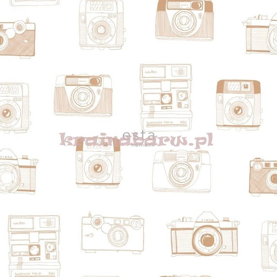Tapeta z aparatami. Naniesiono je na białe tło.