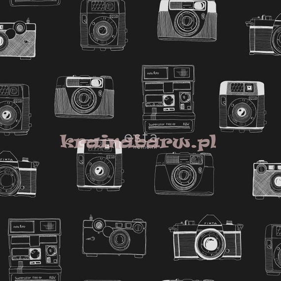 Tapeta z aparatami. Naniesiono je na czarne tło.