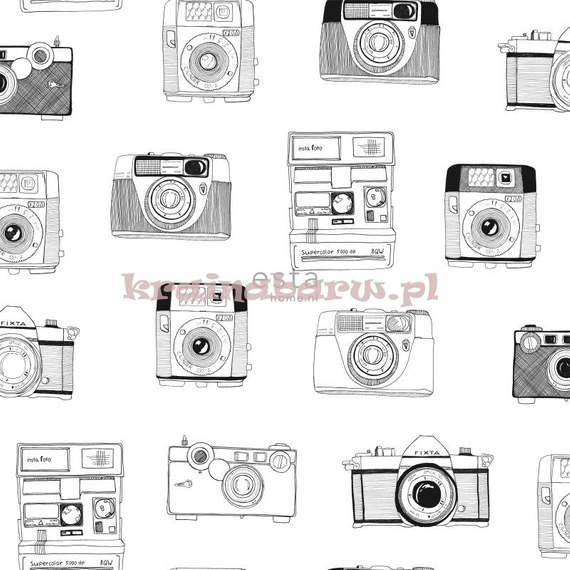 Tapeta z aparatami. Czarno-biała kolorystyka.