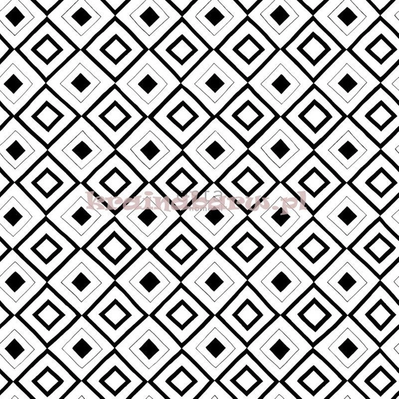 Tapeta z geometrycznym wzorem w romby, kwadraty. Czarno-biała kolorystyka.