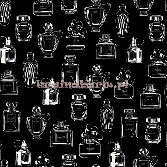 Tapeta z perfumami. Idealne do pokoju dla nastolatki. Czarna kolorystyka.