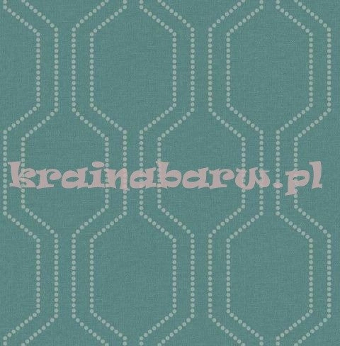 Tapeta z pionowo układającym się wzorem. Tworzy on nowoczesny, geometryczny ornament. Wzór składa się z drobnych, wyczuwalnych kropeczek. Tło jest w kolorze zielonym.