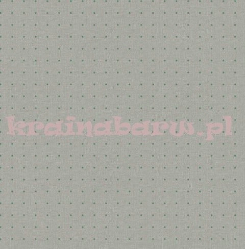 Tapeta w drobne kropki. Są one w kolorze zielonym na szarym tle.