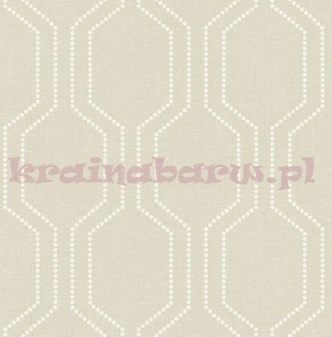 Tapeta z pionowo układającym się wzorem. Tworzy on nowoczesny, geometryczny ornament. Wzór składa się z drobnych, wyczuwalnych kropeczek. Tło jest w kredowym.