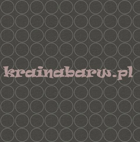 Tapeta w równo ułożone koła. Składają się one z drobnych kropeczek. Kolor czarny.