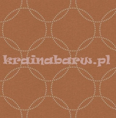 Tapeta w nachodzące na siebie koła. Wzór składa się z drobnych, wyczuwalnych kropeczek. Pomarańzowa kolorystyka.