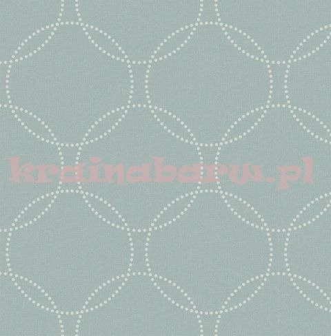 Tapeta w nachodzące na siebie koła. Wzór składa się z drobnych, wyczuwalnych kropeczek. Błękitna kolorystyka.