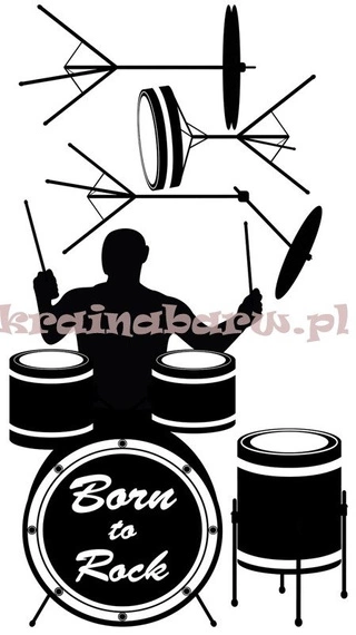 Naklejki samoprzylepne z perkusją i perkusistą oraz napisem Born to Rock -urodzony do rocka,