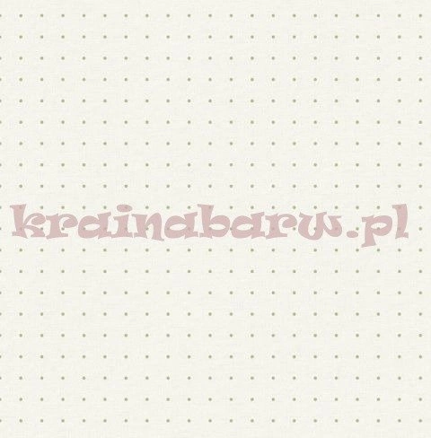 Tapeta w drobne kropki. Są one w połyskującym zielonym kolorze na jasno białym tle.