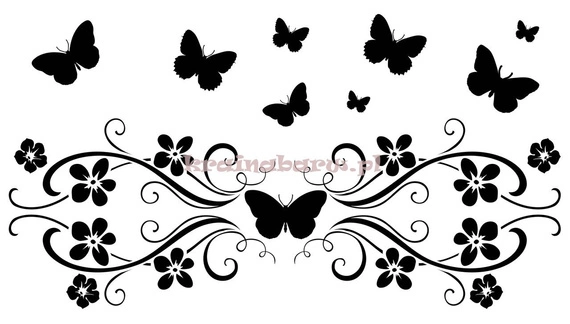 Naklejki samoprzylepne z nowoczesną grafiką motylami różnej wielkości i kwiatowymi ornamentami,
