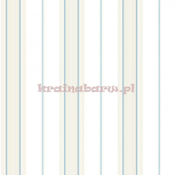 Tapeta przedstawia drobne paski w odcieniach beżu, z drobnymi niebieskimi akcentami.