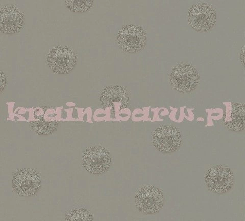 Tapeta z logo Versace. Szara kolorystyka z delikatnym połyskiem.