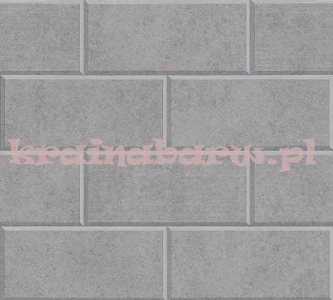 Tapeta z cegłami. Widać na niej dyskretne szlaczki i motywy związane z Versace. Tworzy efekt 3D. Kolor szary.