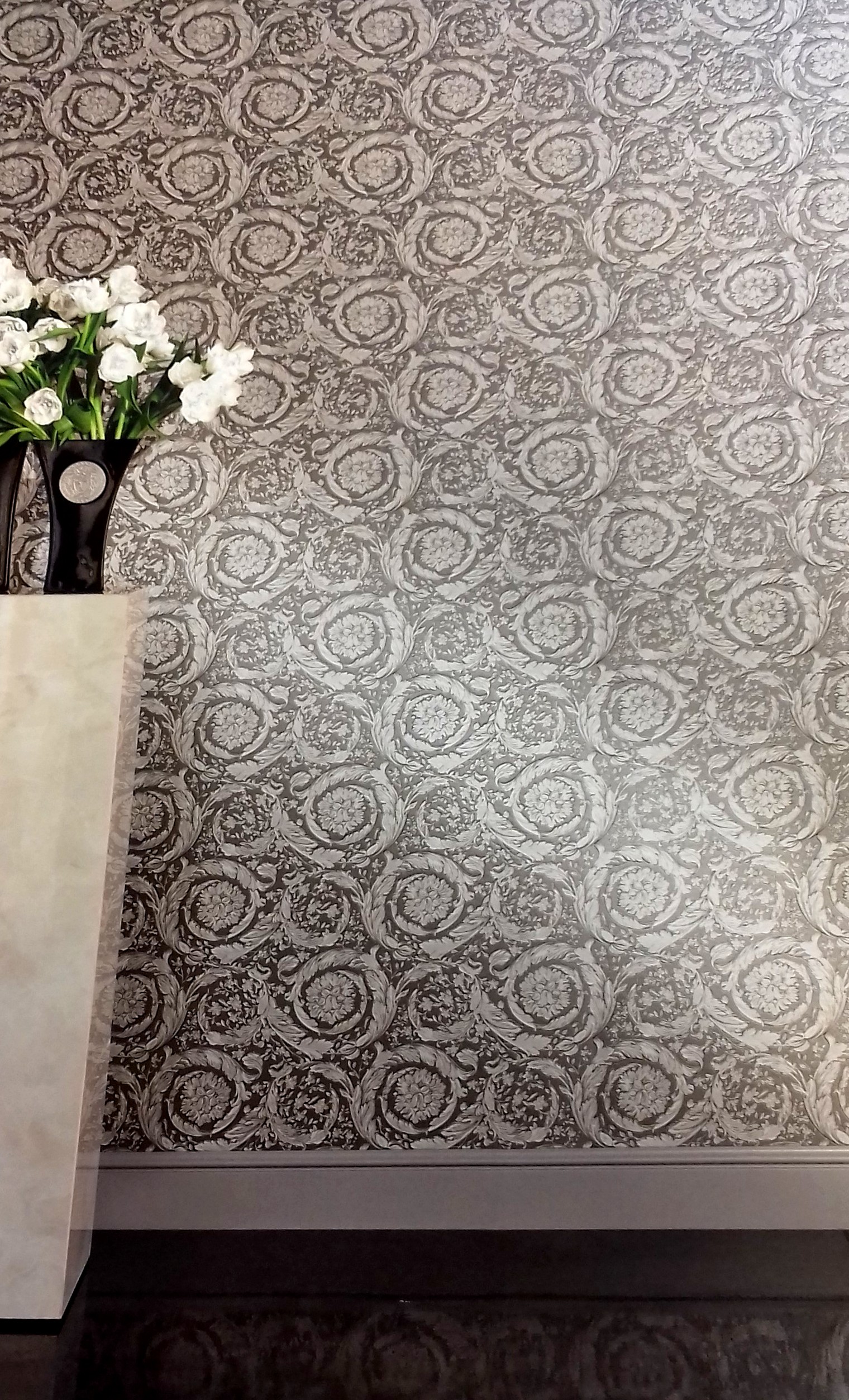 Versace Home III to wyróżniająca się kolekcja tapet, znanej marki ze świata mody. Charakteryzuje ją bogaty i śmiały styl oraz różnorodna, żywa paleta kolorów. Znajdują się tutaj ornamenty, "futra" zwierząt, porcelanowe talerze, jednokolorowe tła i wiele innych wzorów. Doskonałym uzupełnieniem tapet są połyskujące kryształki i bordery.