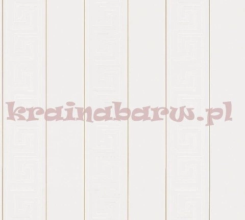 Geometryczna tapeta z wyczuwalnym w dotyku wzorem. Jest on inspirowany malunkami ze starożytnych greckich waz. Układa się on na tapecie w poziomych pasach. Kolor biały.
