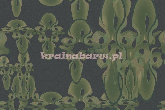 Tapeta z wzorem, który przypomina rozlany atrament. Tworzy on unikatowy wzór, który mieni się w odcieniach barwy zielonej i złotej z połyskiem. Naniesiono go na ciemne tło o wyczuwalnej fakturze.