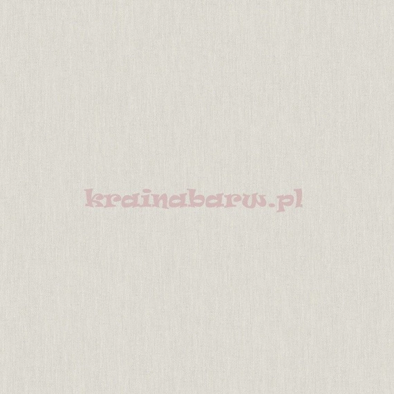 Jednokolorowa tapeta. Jej faktura jest wyczuwalna w dotyku i przypomina splot tkaniny. Kolor jasno beżowy.