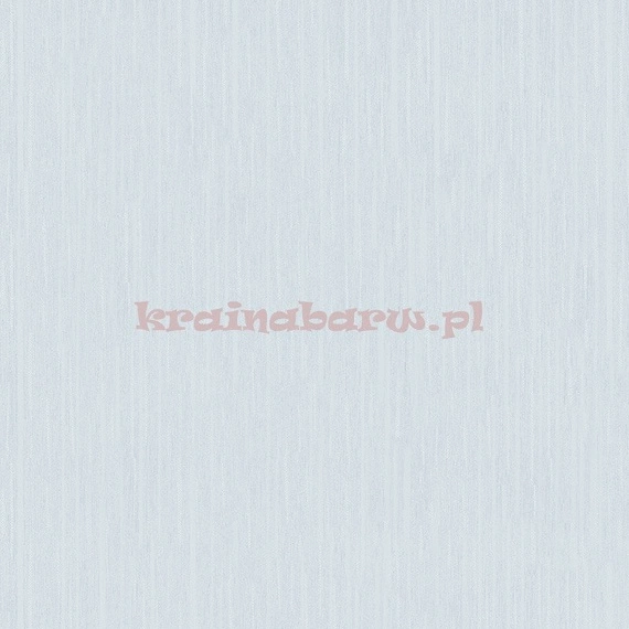 Jednokolorowa tapeta. Faktura w delikatne pionowe pasy. Przypomina tkaninę. Kolor błękitny.
