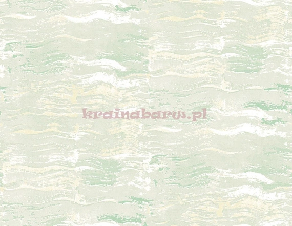 Tapeta w poziomo układające się faliste pasy. Jasno zielona kolorystyka.