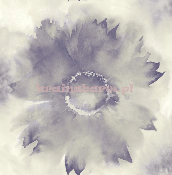 Tapeta z wzorem w duże, malowane kwiaty. Fioletowa kolorystyka.