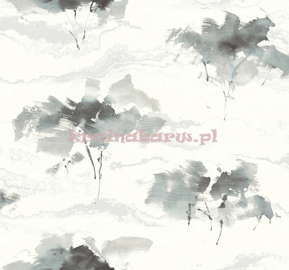 Tapeta z wzorem w duże, malowane kwiaty. Szara kolorystyka.